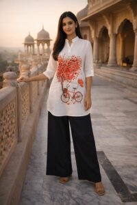 Crafted in soft and breathable rayon fabric with a beautiful artistic print, this outfit ensures both comfort and style throughout the day.