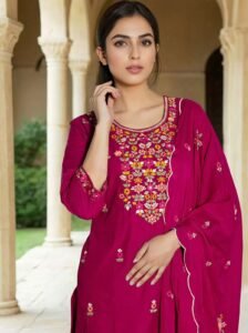 Upgrade your ethnic style with this beautiful embroidered suit set from Zinora.
