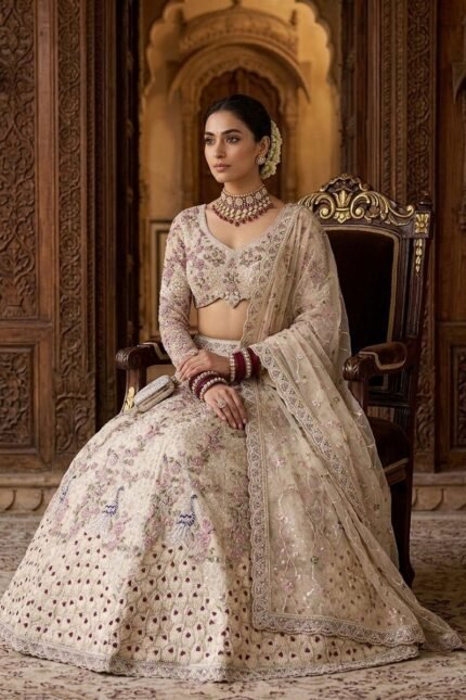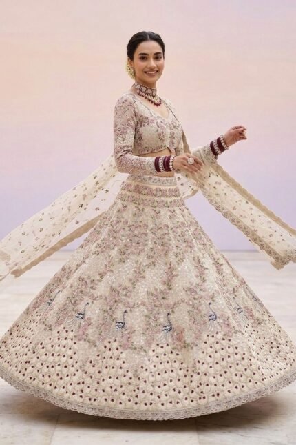 ZINORA Festival Embroidered Tissue Silk Lehenga Choli Set with Dupatta